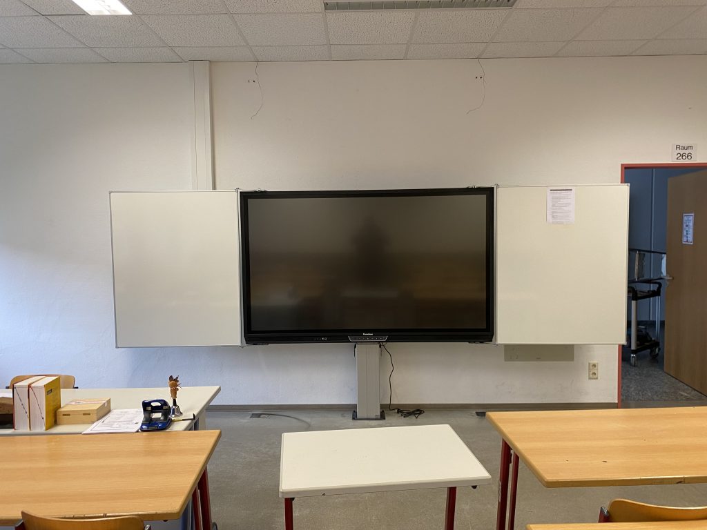 Ausstattung eines Berufskollegs mit 16 Legamaster ETX8620 auf einem Remonta System RDFS (Doppelpylone), vordere Tafelfläche mit Seitenflügeln